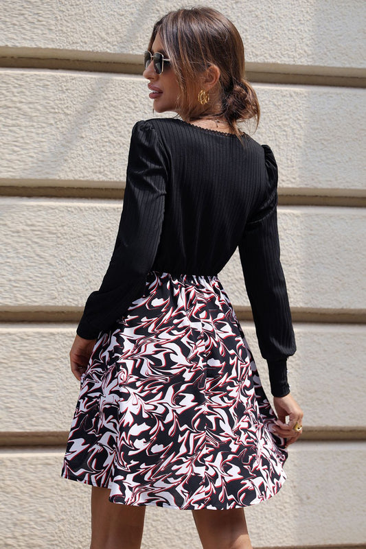 Scoop Neck Puff Sleeve Printed Mini Dress