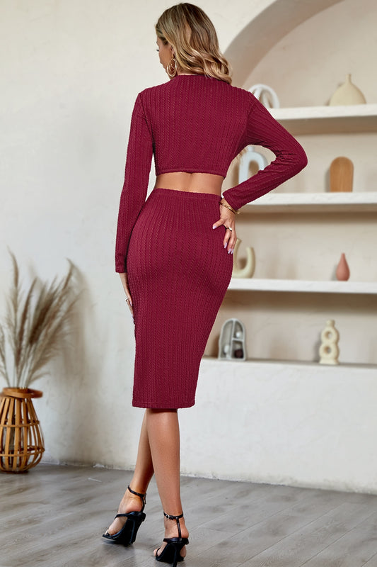Cutout Crisscross Round Neck Long Sleeve Dress