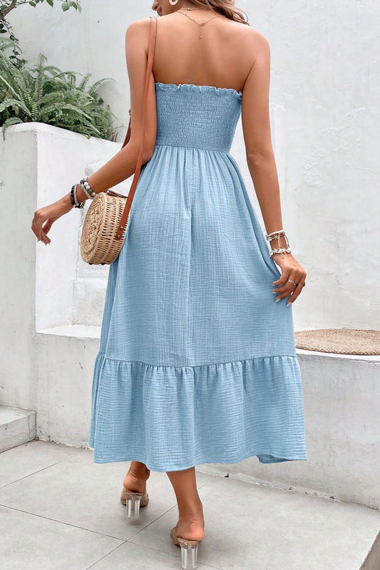 Sweetheart Neck Buttoned Sleeveless Midi Dress
