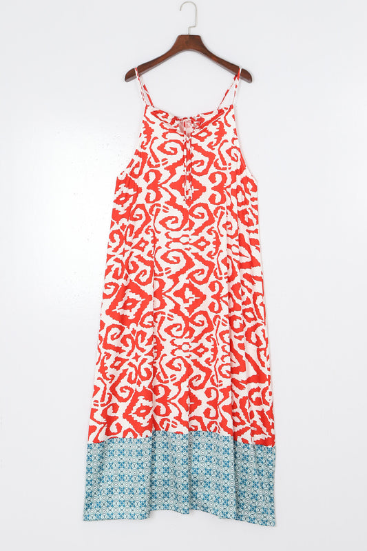 Printed Spaghetti Strap Straight Neck Dress