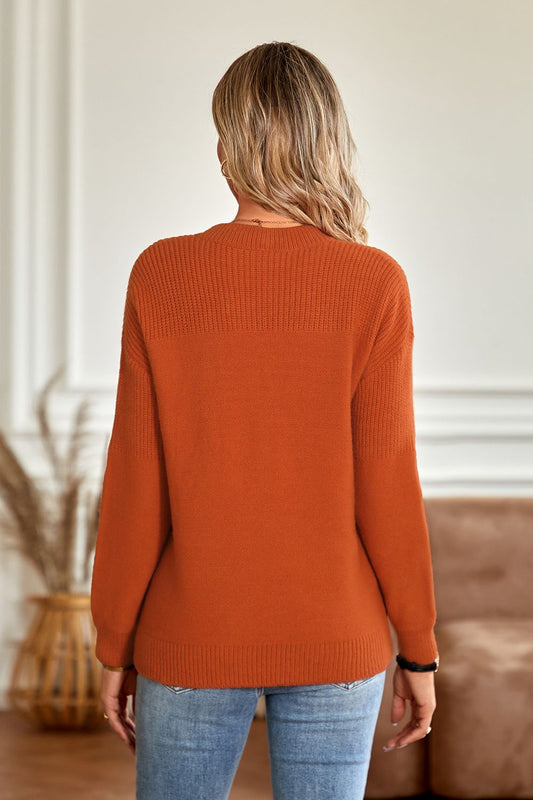Round Neck Ribbed Long Sleeve Sweater